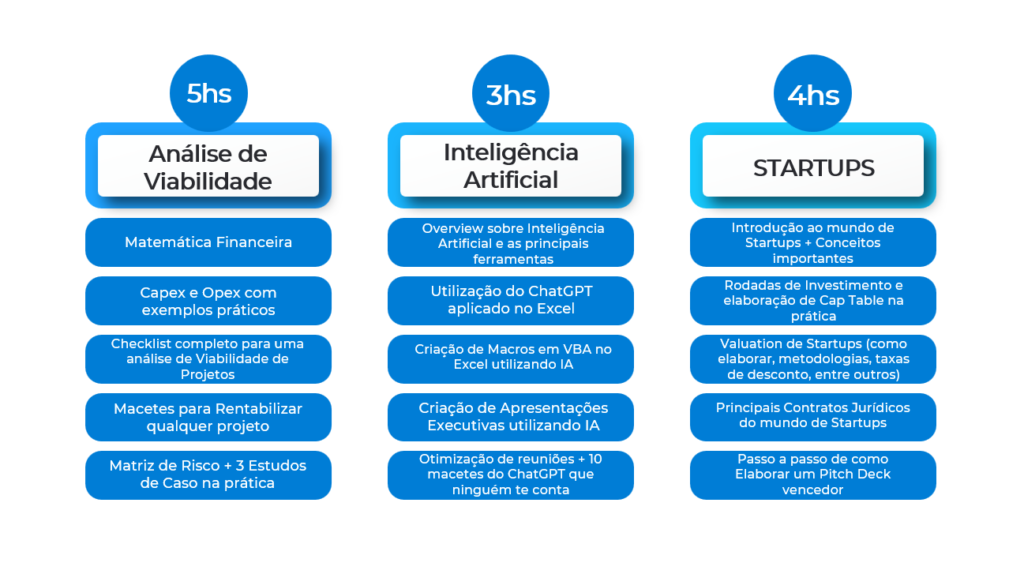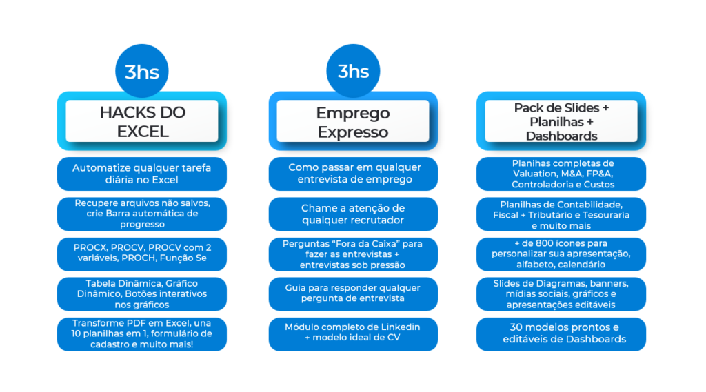 Aprenda o passo a passo na prática para se tornar um Expert em Finanças Corporativas com o curso 8 em 1. Nosso Treinamento reúne 8 cursos em 1 e vai te levar do Zero ao Avançado em + de 50hs de puro conteúdo prático e aplicável no seu dia a de trabalho!
